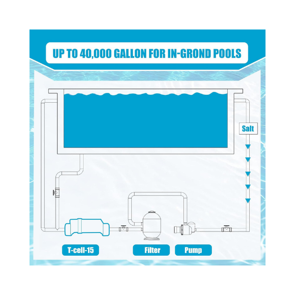 Pool Size: Up to 40,000 gallons (inground pools)