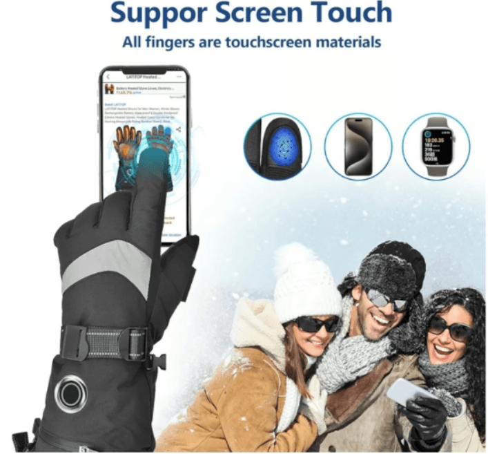LATITOP Heated Ski Gloves Rechargeable Battery Touchscreen Waterproof 10H Heat